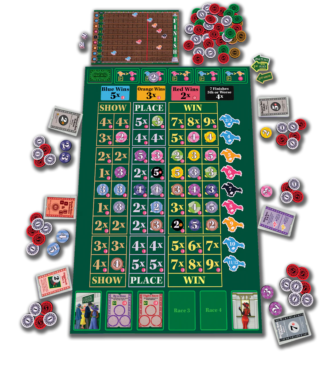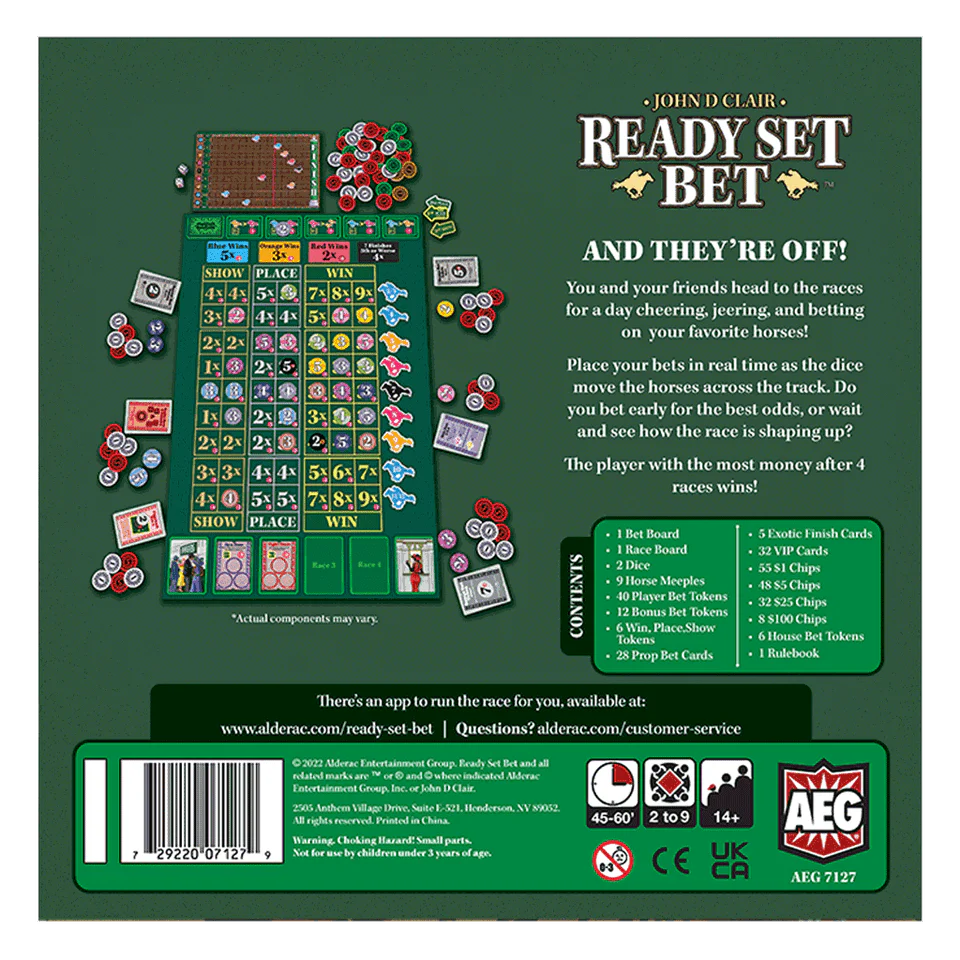 In Ready Set Bet, you and your friends head to the races for a day of cheering, jeering, and betting on your favorite horses, whose fates hang on every roll of the dice.